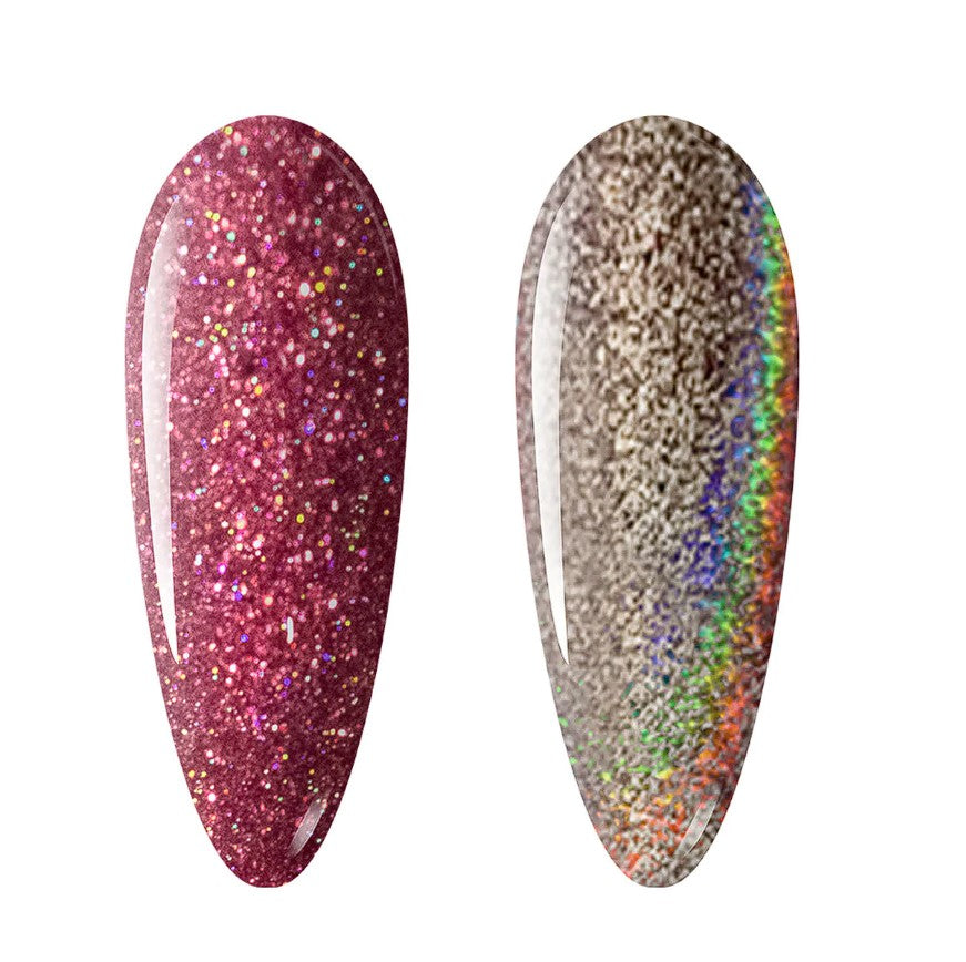 Nitro Hologram Collection includes 24 holographic metallic glitter colours. The powder can be used for dipping system to create a sugar texture/effect or be used as a holographic chrome powder when rubbed on. Hologram Collection has all the glittering shades to bring your nails the most beautiful glitz and glam. Get two styles through one product! It's a win win!